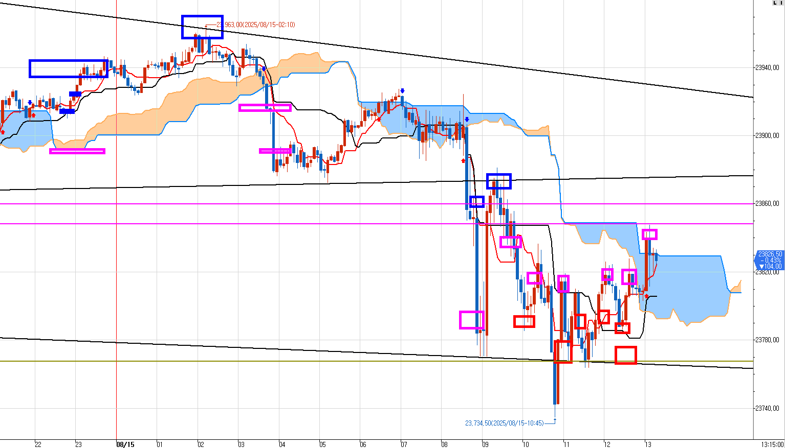 프리장에 왼쪽 파란박스들 4개구간 매도 9개 들어가서 시원하게 수익 낸 것은 계산도 안했다.