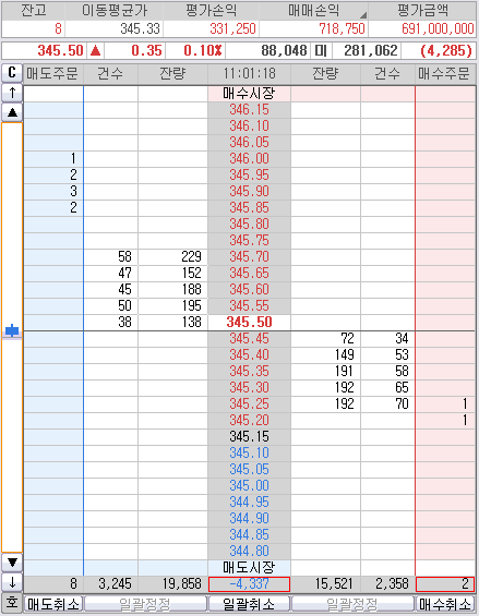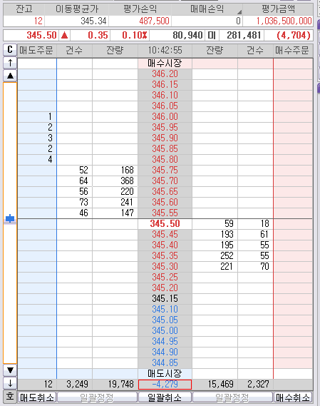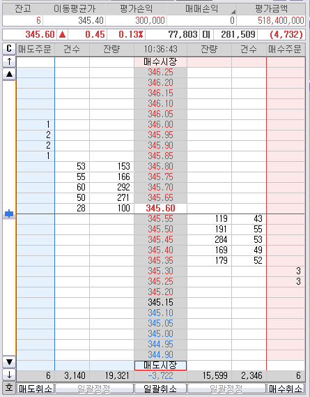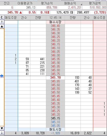 눈치보다 오늘 345.30까지 다시 안 빠질것 같으면 후다닥 던지고 마감해야 것다.