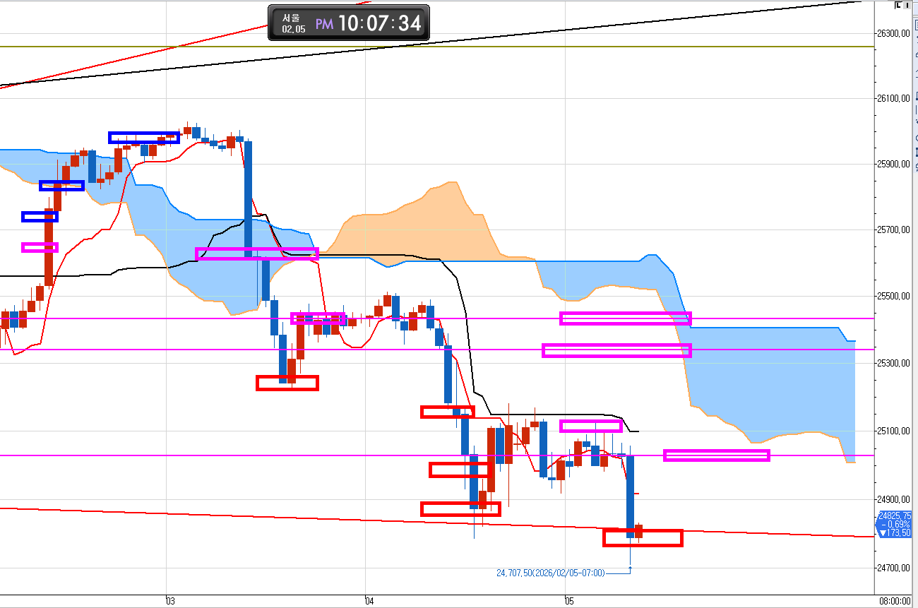 시장을 지켜보겠다. 그러나 나는 25435 찍을때 까지는 끝까지 물러서지 않고 매수로 대응할 것이다.