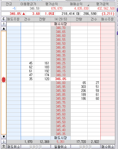 총 25개 매도 잡아서 40틱 매도 목표가 345.80 부근에 대부분 청산~