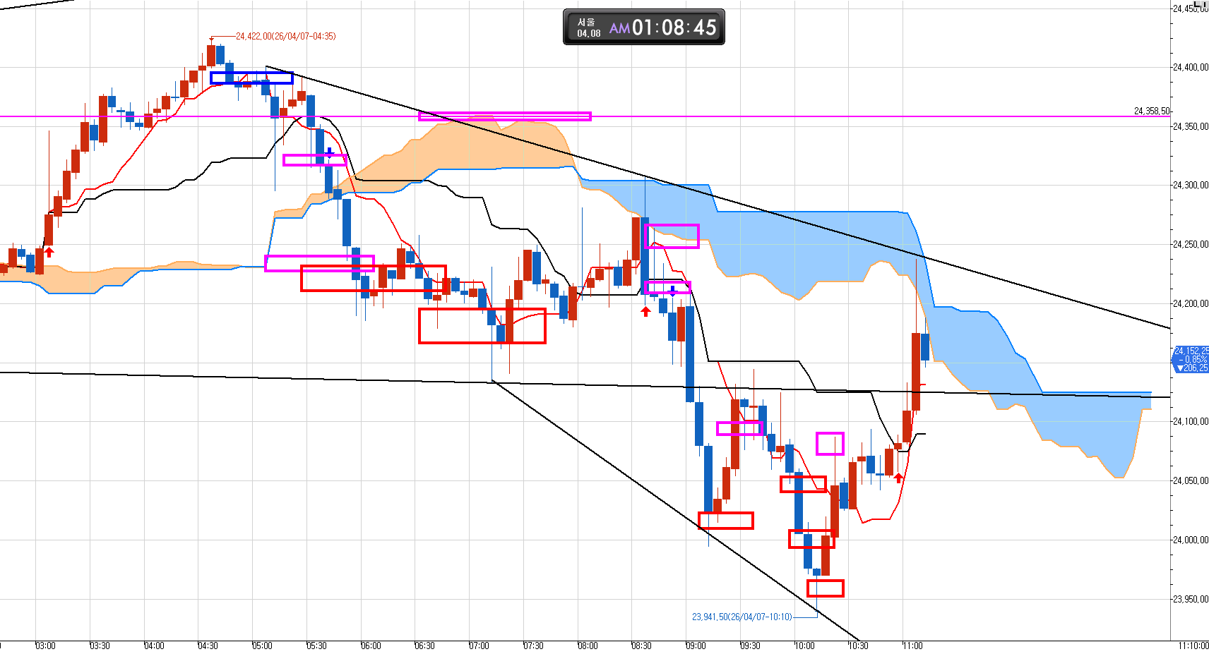 프리장에 일목도사 혼자서 매도 해서 시원하게 하루 일당 확보해 놓고~