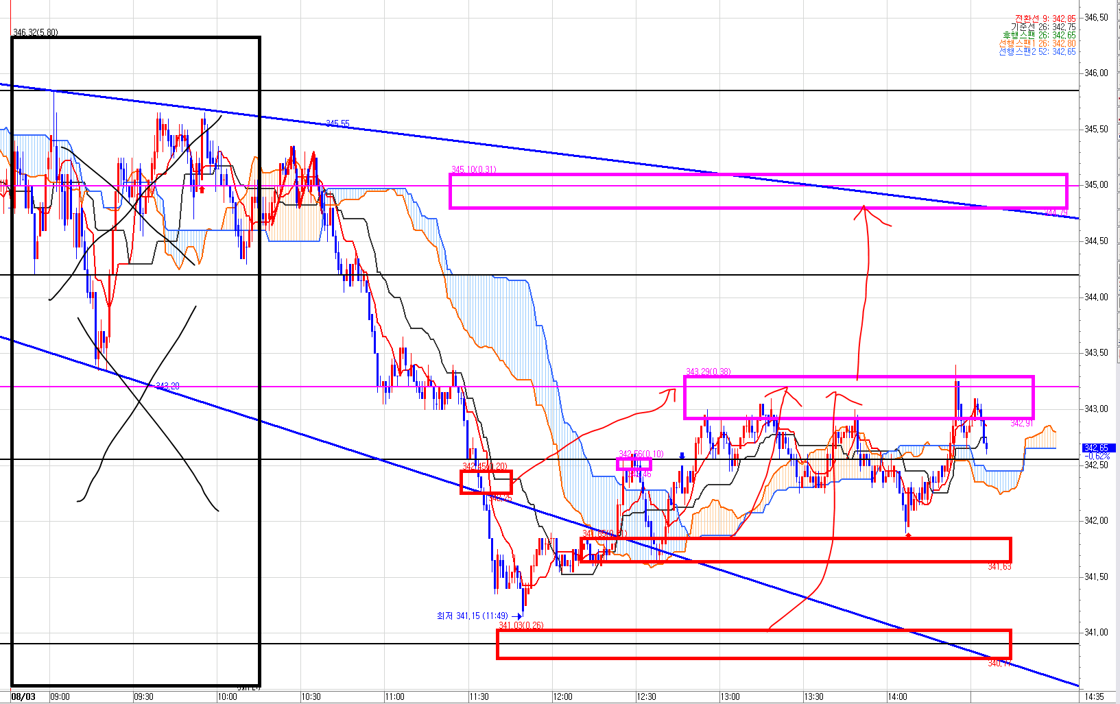 밑에 그어 놓은 빨간색선은 오늘 30분봉상 강력 지지선이다.