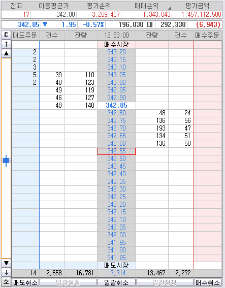 343.20 매수 목표가 도달되어 싹~ 청산하고.
