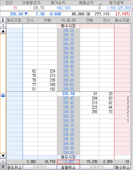 그래도 나는 최종 매수 목표가인 337.00 에 44개 매수를 한방 청산 하지 않았다.