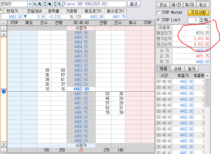 첫번째 빨간색 매수 박수에 걸어 놓은 물량이다.