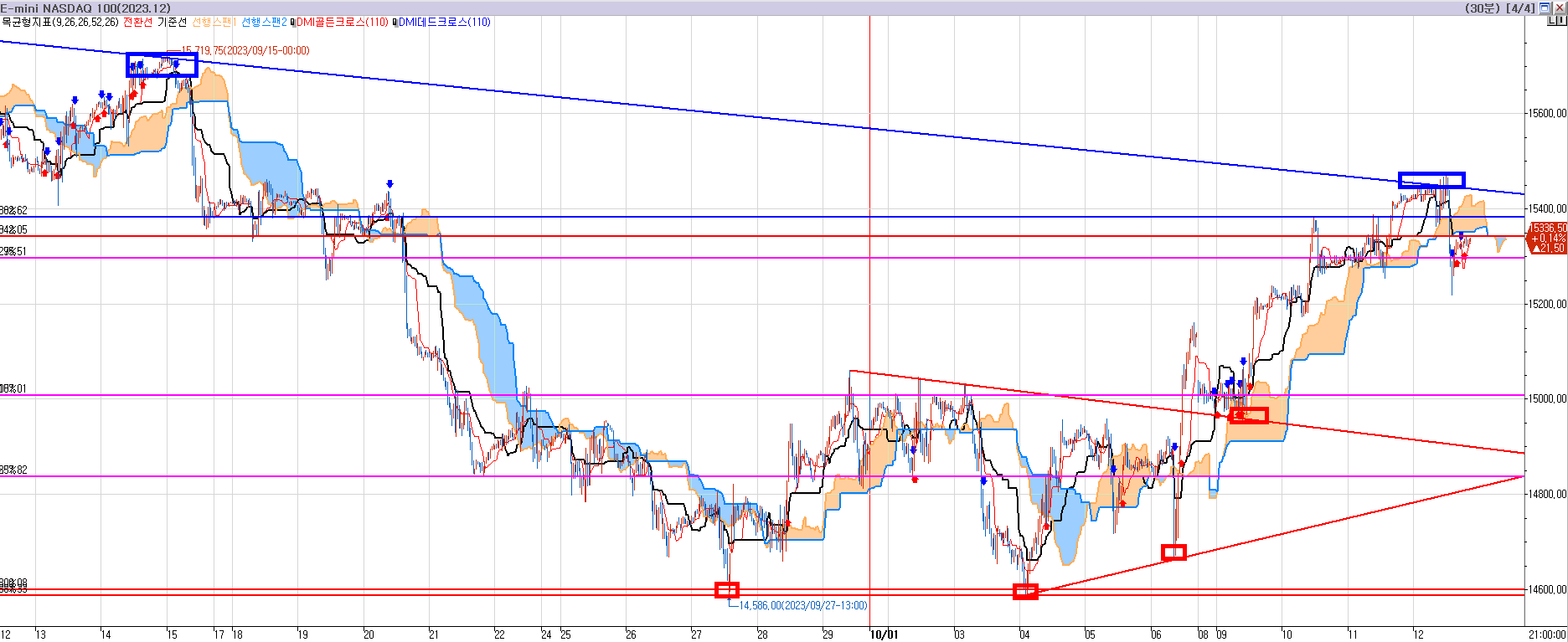 나스닥 30분봉이다. 9월부터 오늘까지다.