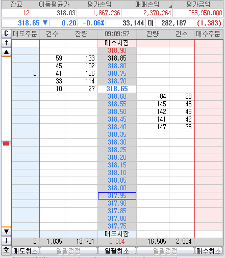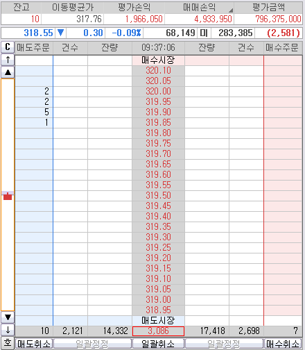 이건 안팔아~ 니가 줄듯 말듯 고작 319.25까지만 쳤는뎅... 나는 거기는 줘도 안먹어