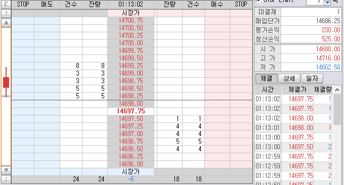 10개는 홀딩하면서 내려주면 추가 매수로 대응하면서 수익구간에서 청산하면서 장 막판까지 버텼다.