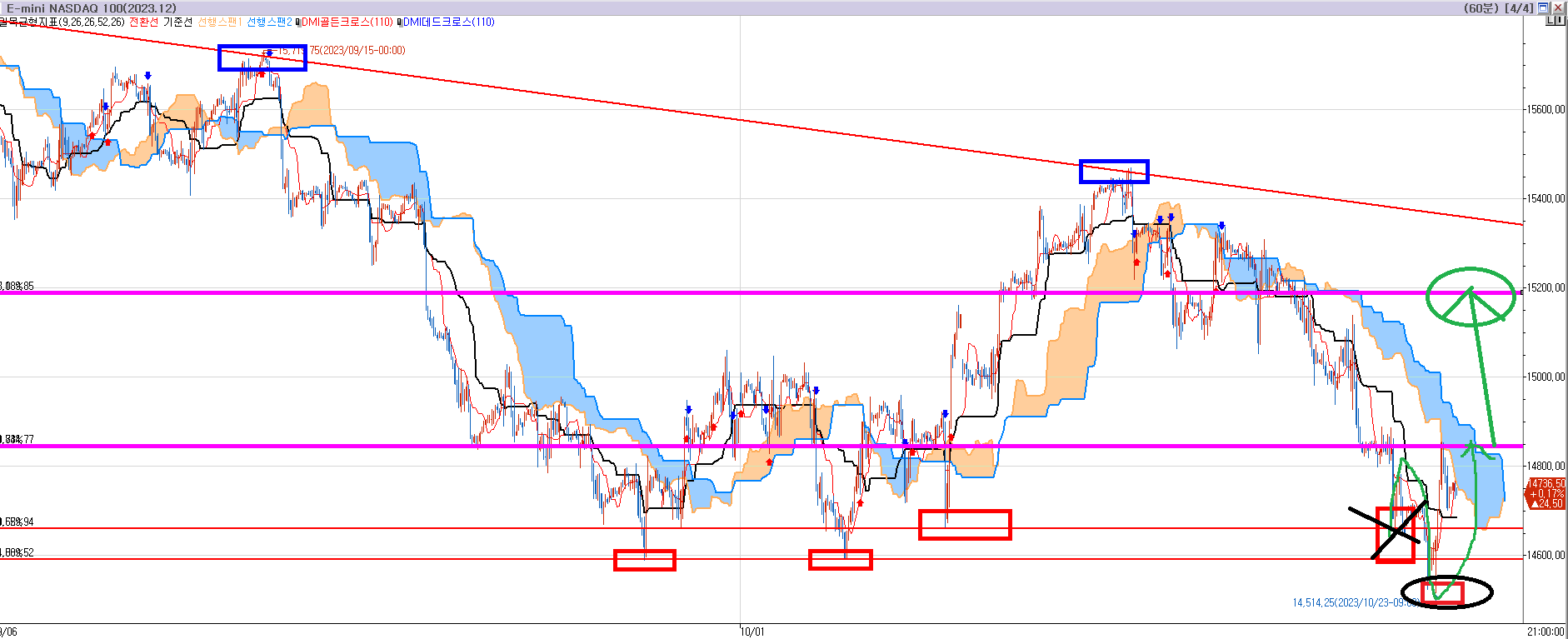 나스닥 최종 매수 목표가 15190까지 흔들고 지지고 볶고 하면서 찌글 찌글 상승으로 돌릴 수 있다.