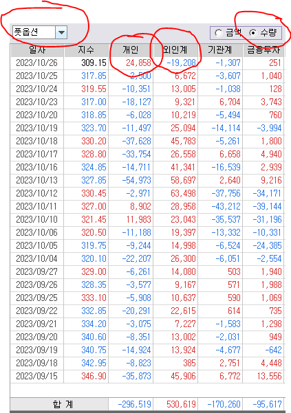 111. 오늘 외인이 풋을 팔았다! 10월26일