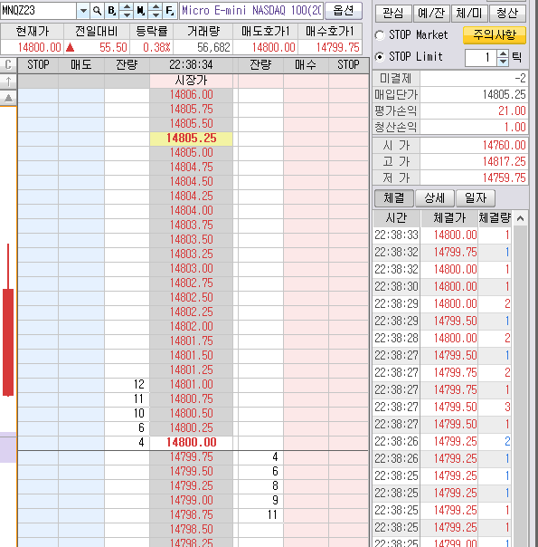 2. 나스닥 70틱 매도 목표가 발생