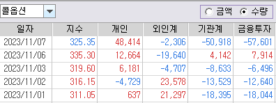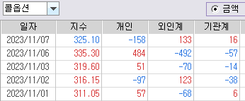 개미들은 신기하게도 풋 매도질 하고 있었네 그려...