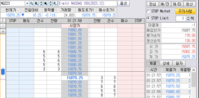 나스닥 45틱에 매도 목표가도 발생했었다.