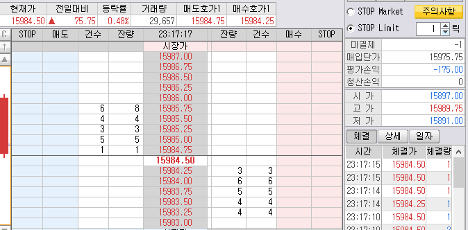몽땅 한방에 15865보다 10틱~15틱위에 청산하고 1개는 홀딩할 것이다.