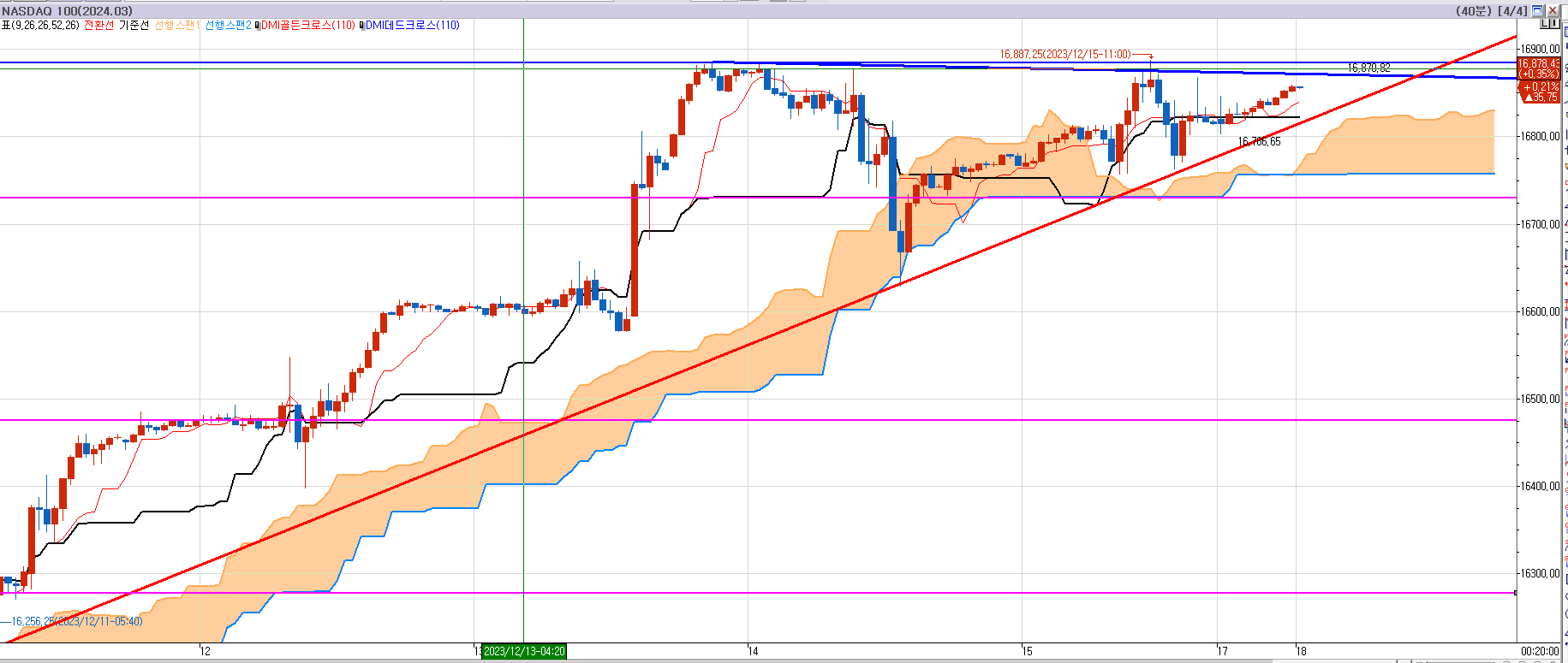 아무튼 나는 나스닥 40분봉 부터 60분봉 사이에서 모두 발생한 1차 매도 목표가 16735까지는 무조건 먹어 볼 것이고 다 팔지 않고 2차 매도 목표가 까지도 몇개는 홀딩할 것이다.
