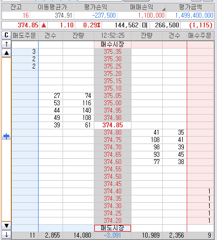 따라서 매수 잡힌 16개중 1차로 11개는 375.25~40에 수익 청산 예정이고