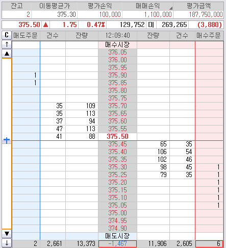 이제 375.95만 찍어라~~ 오늘 단타 매매 끝!!!