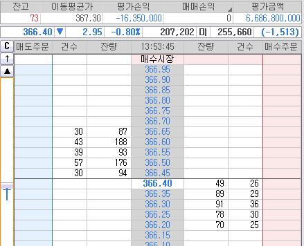 에이.. 오늘 372.00 매수목표가 못 치것네....냅둬라