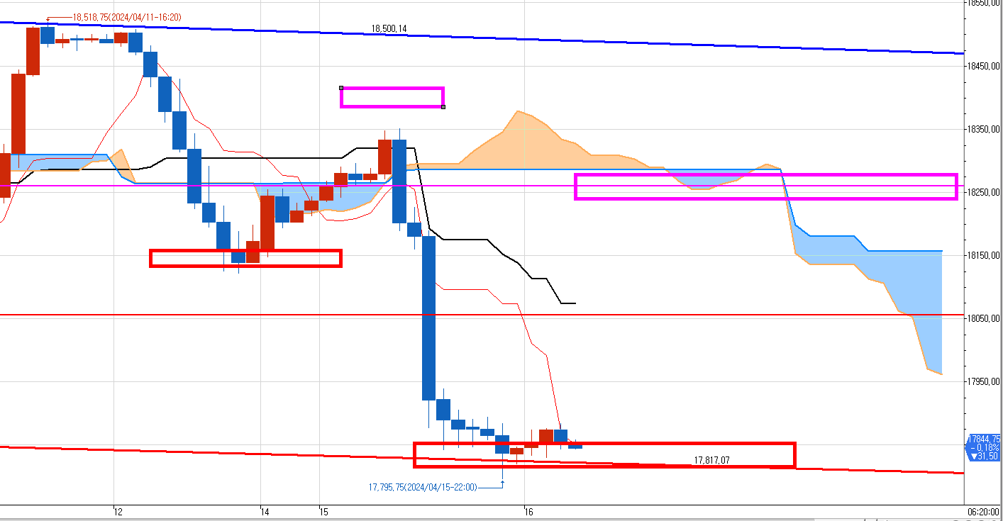 어젯밤 분홍색선 매수 목표가를 진짜..조금 남기고 다시 와장창 빠져버렸다.