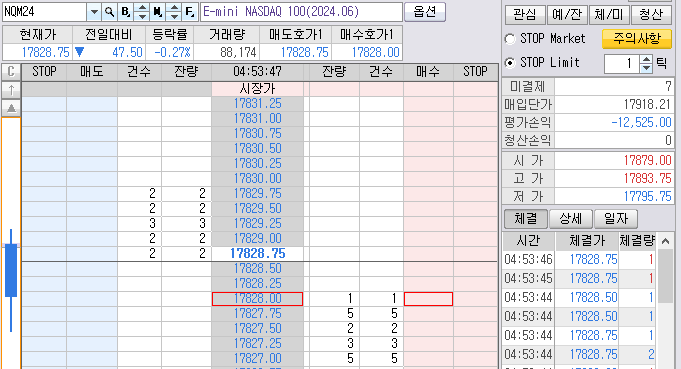 나머지 한개는 S&P가 매수 목표가 칠때 던지려고.. 대충.. S&P 매수 목표가와 비슷한 구역에 나스닥 청산 걸어놓았다. 그런데.. 목표가 조금 남기고 다시 퐁당... 밑으로 빠져버린것이다.