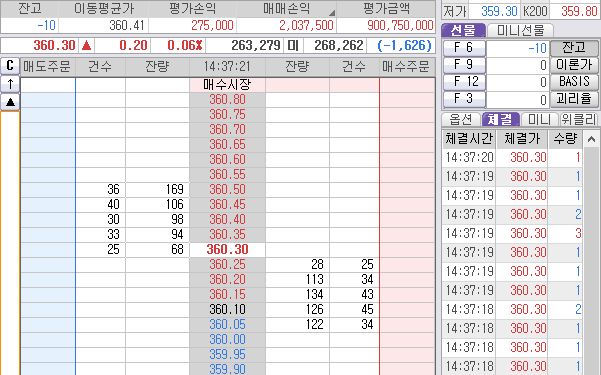 360.40~50사이에 10개 매도 잡았다.