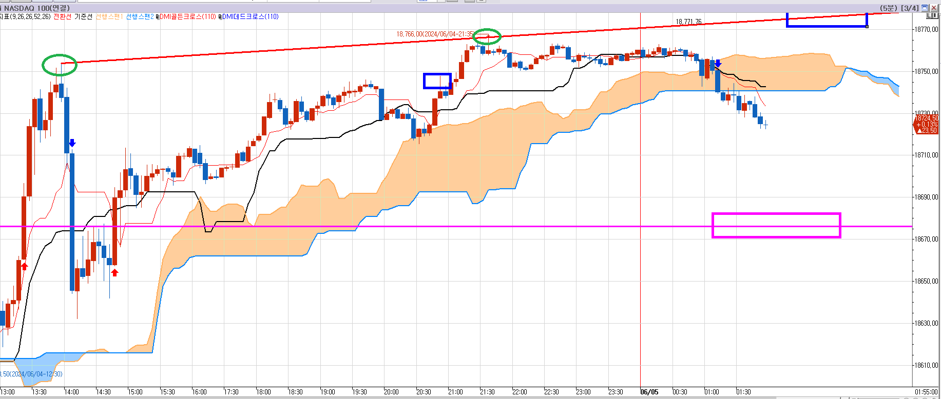 나스닥도 오늘 오전에 첫번째 파란 박스 매도 3개 진입했다.