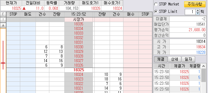 하루 종일 매도만 쳐댔다. 본전 혹은 약간의 수익 구간이 있었으나....