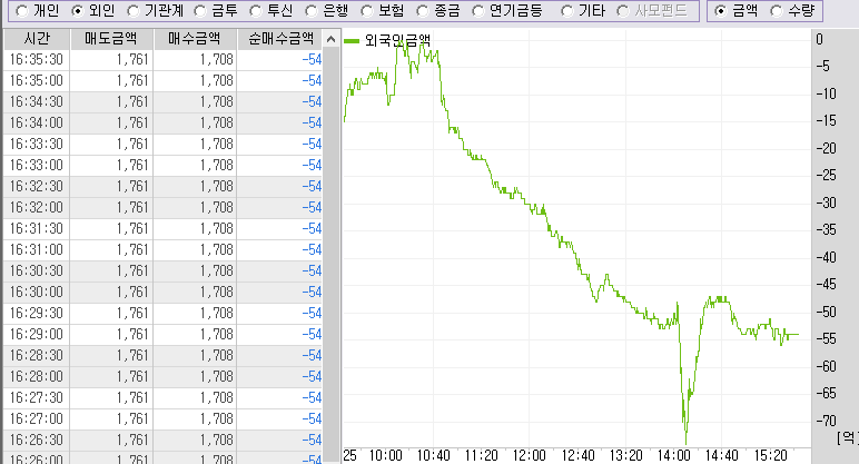 외인은 오늘 콜옵션을 54억 매도 했다.