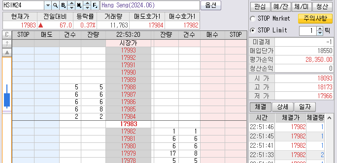 이것도 국내선물과 똑같다. 수익구간에서 그것도 100~200만원 수익이 아니라 1천~2천만원 수익이 나고 있는데...