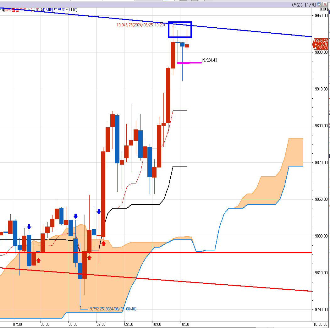 반드시 찍어야 할 매수 목표가 19905 위로 세번째 분홍박스가 있었기 때문이다.