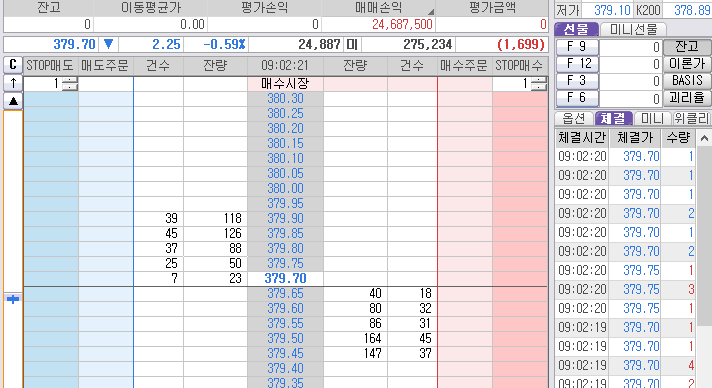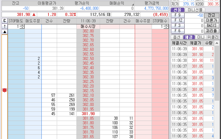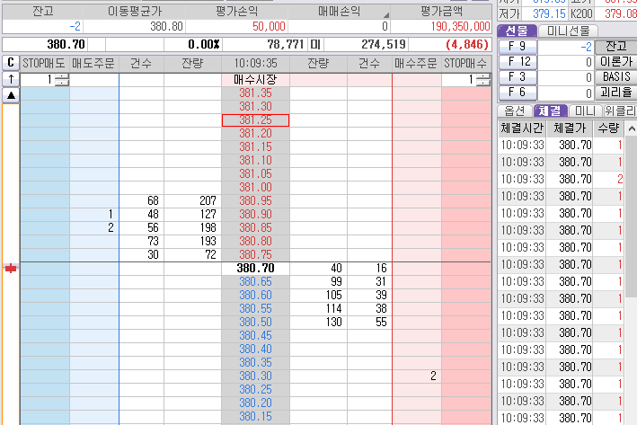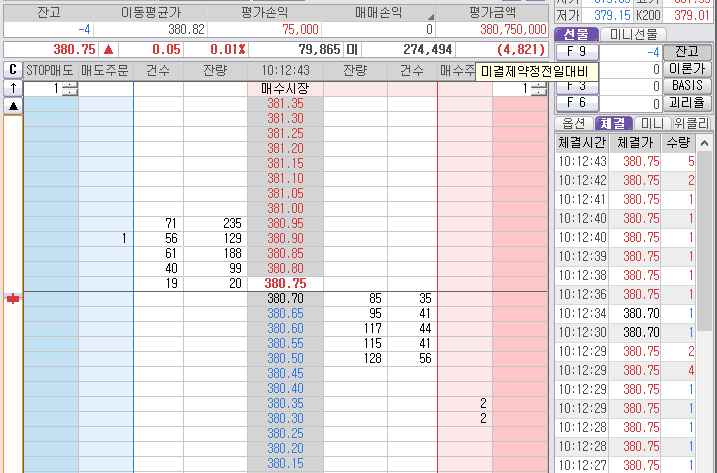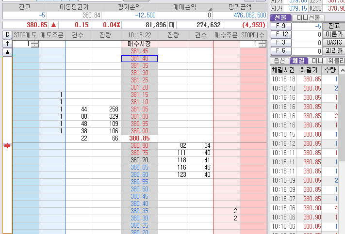 먼저 잡힌 2개는 380.35 매도 목표가 청산 준비. 시작은 짧은 매도 단타 먹기 위해 시작된 것이었다.