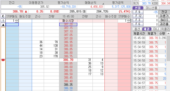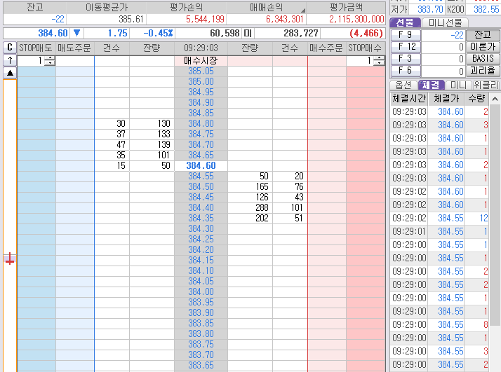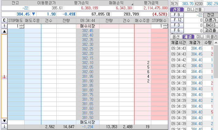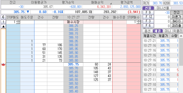 게다가 오늘은 385.20과 384.80도 가겠다고 중복 약속을 하는게 아닌가?