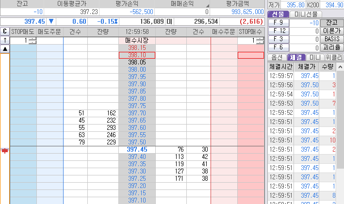 윗 검정색선! 398.40 아침 시초부터 그어 놓은 선이다!