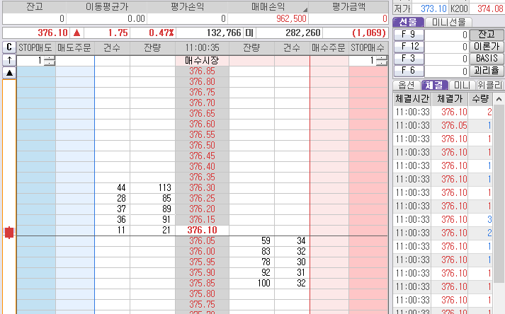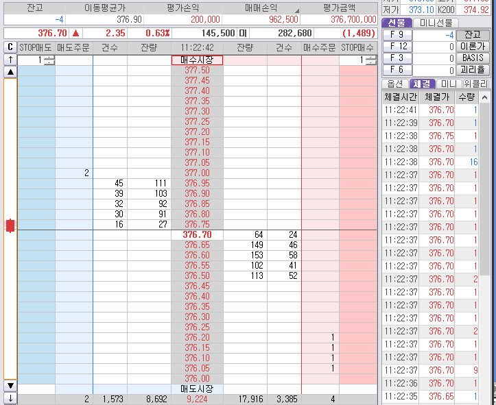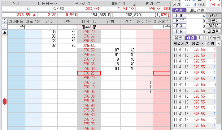 4개 잡힌것은 매도 목표가 376.10 부근에 한방 청산 준비.