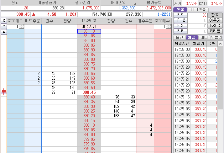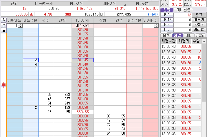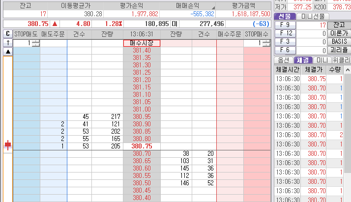 위로 381.40도 보인다. 그러데 그 중간에서 매수질 하다가 손절이나 주고... 다시 잡은 것도 제대로 못먹고...