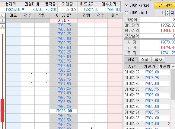 나는 빨간박스 1개 매수 따라 잡음.