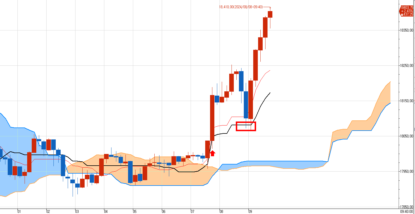이런? 1분, 3분, 10분이 다 동시에 지지대에 닿은 것이다. 게다가 오늘 뚫렸던 고가.