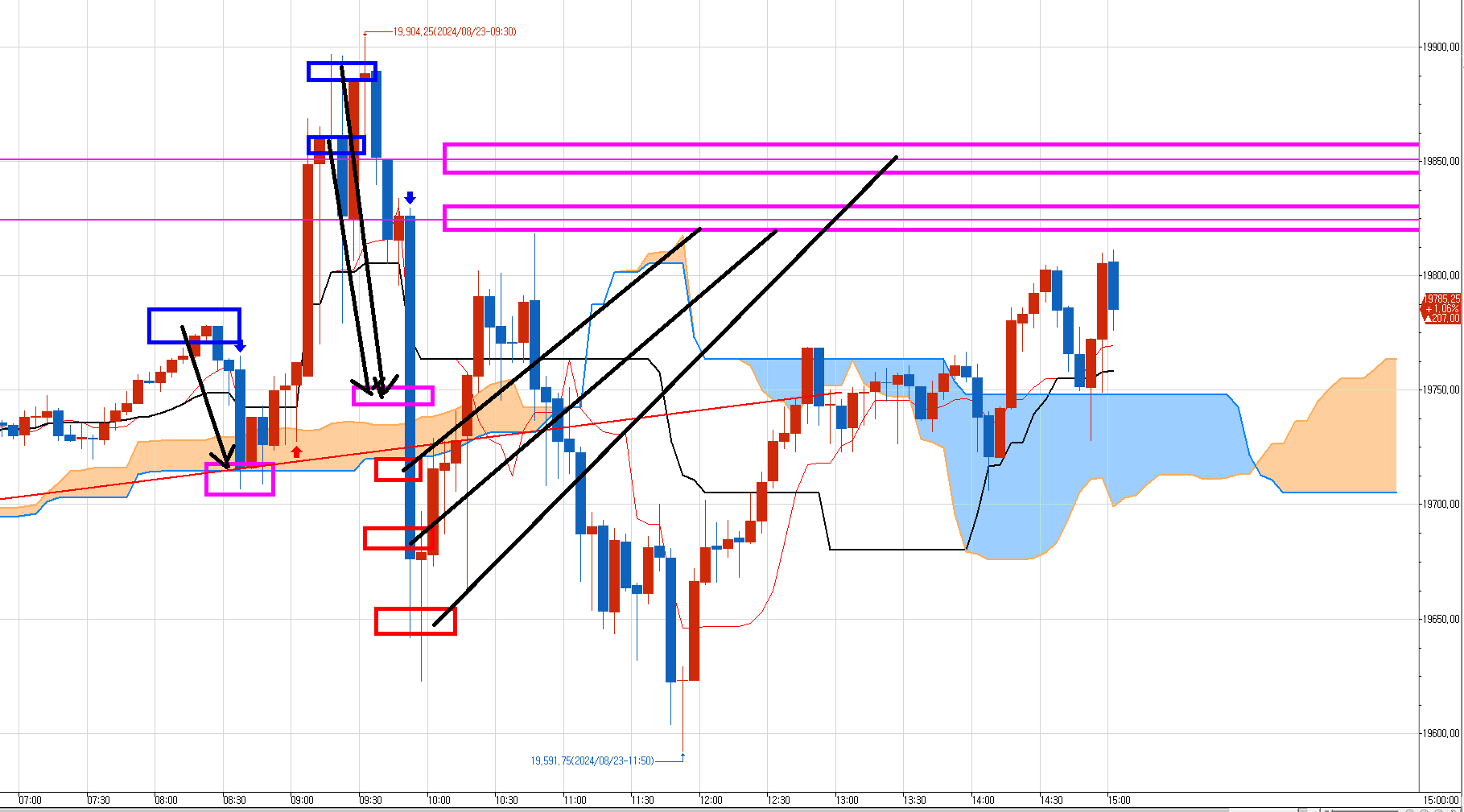 214번 글에서 미리 얘기했다. 첫번째 파란박스는 30분봉상 기준선과 음운이 수평대로 만나는 저항이라고.