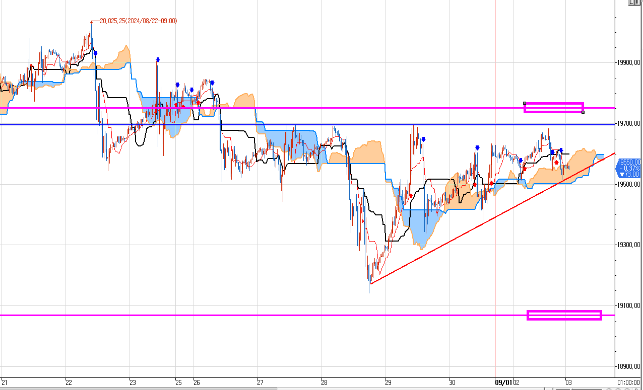 먼저 218번 글 복기한다. 나는 지저분한 과거 매매현황 다 지우고 어제 오전에 나스닥 30분봉이 이리 보인다고 했다. 그리고 위 파란색 저항선 뚫으면 매수 따라가서 19750 먹을 것이고 밑으로 빨간색 지지선 깨지면 매도 따라가서 2주전부터 외쳤던 19069!!! 우라질 69 먹으러 가겠다고 참 친절히도 설명했다.