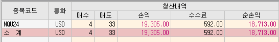 일목중생 중 마이크로 나스닥으로 2~6개 계약 하시는 분의 오늘 수익 계좌다.