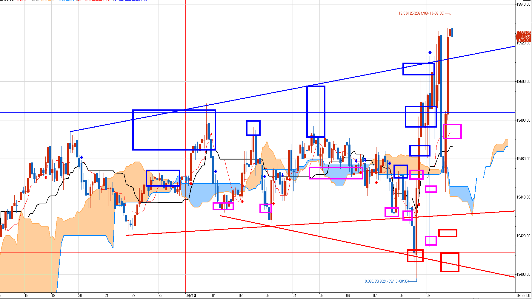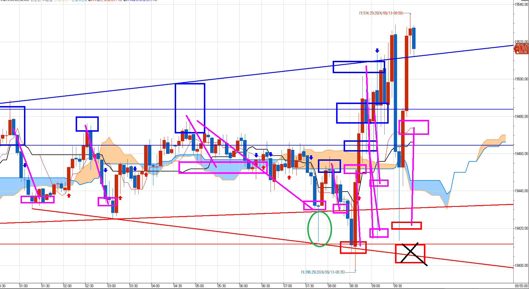 오늘 오후 글에서 저~~~밑에 매도 목표가를 그려놨었다. 19290 정도 된다.