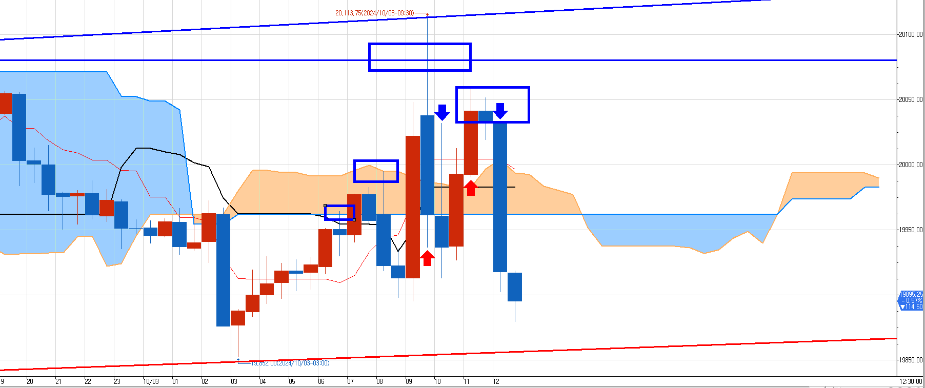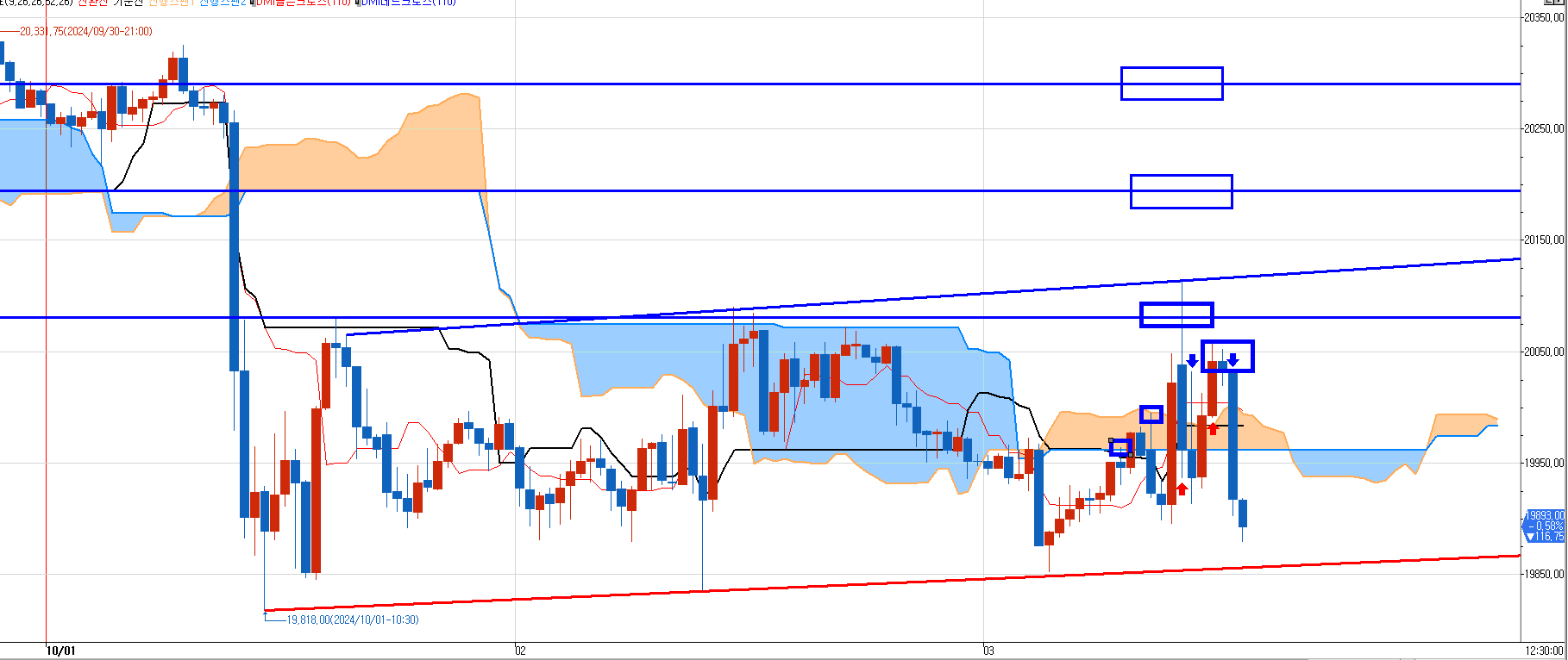 가장 윗쪽의 비스듬한 대각 파란 저항선은 나중에 내려오고 다시 그은 것이다.