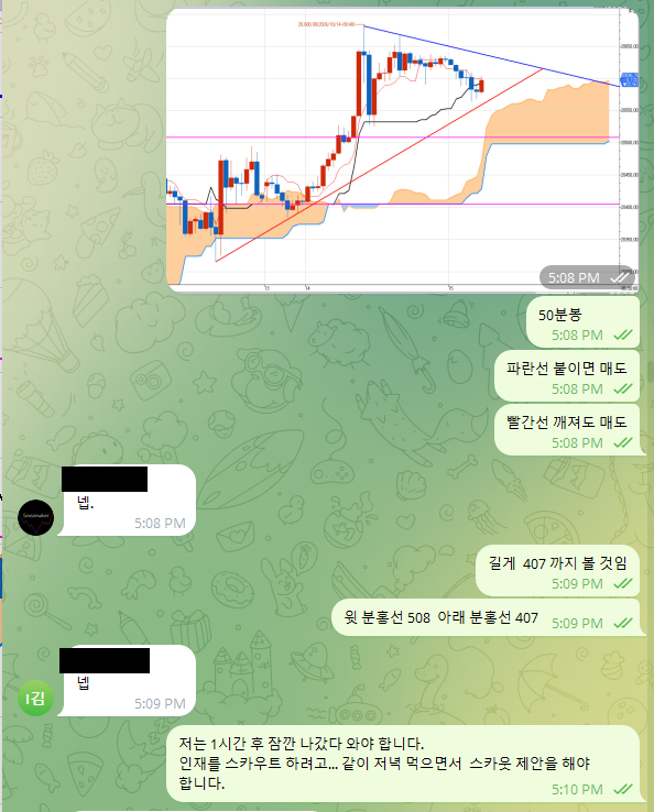 다시 매도 진입 시작하면서 날린 리딩 대화다