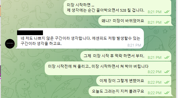 미장 시작과 동시에 쳐 박는 패턴이 나올 확률이 매우 높다.