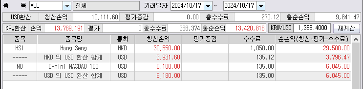 일목중생과 똑같이 매매하는 소액계좌, 오전엔 항셍이 먹고, 밤엔 나선이 먹고~