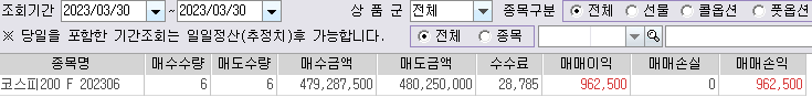 1. 코스피200 선물 일목균형표 실전매매 3월 30일