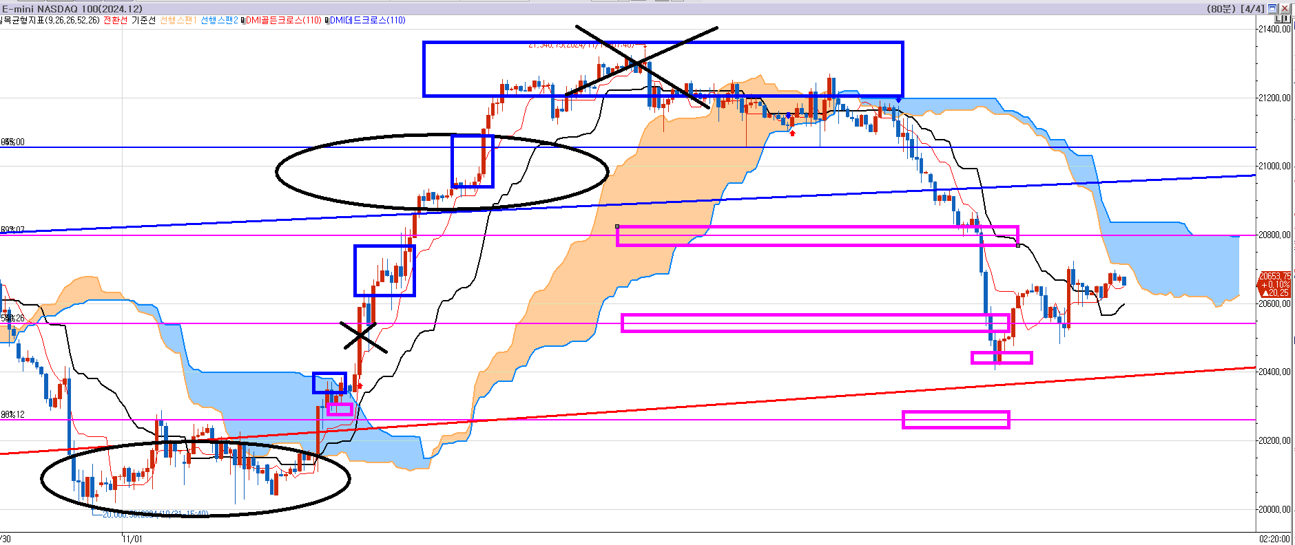 252, 252-1, 252-2번 글에서 계속 올렸고 설명했던 나스닥 80분봉 이다.