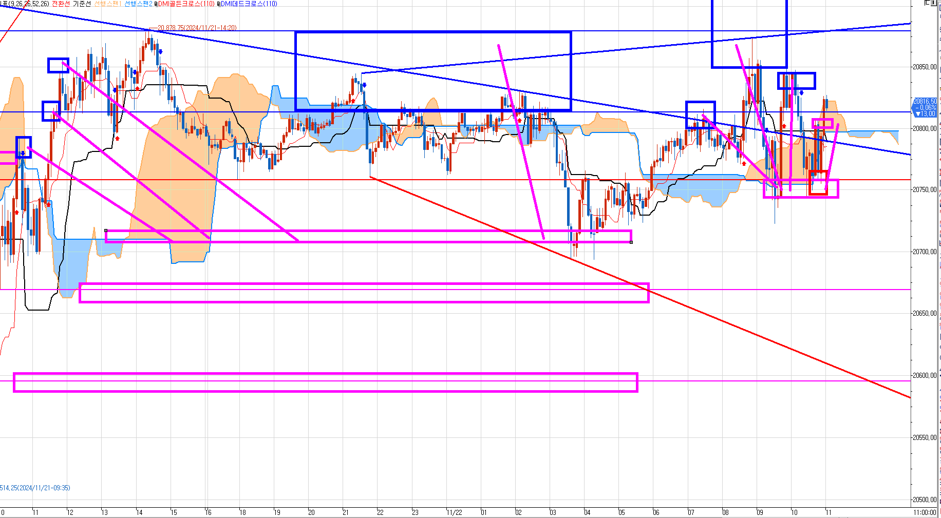 20850 이상에서 추가 매도 진입하면 다 수익으로 빠져나올 수 있는 구간이었다.