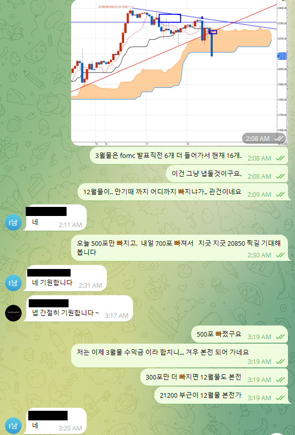 어제 알람 맞춰놓고 베트남 시간 새벽 1시50분에 일어나서 FOMC 발표 3분전에 3월물 10개 이미 화요일 최고점에서 매도 10개 진입한 것에 추가로 6개 더 진입하여 16개 홀딩하고~~~
