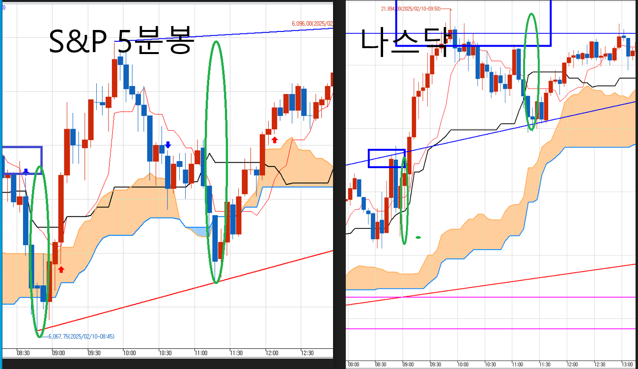 5분봉 양운에 음봉 한번 안박고.. S&P는 오히려 양운을 깨고 음봉세우고 떡락을 하는데...